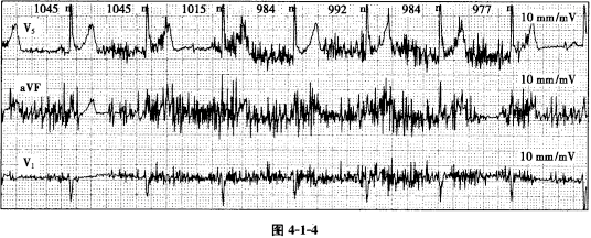 患者男性,53岁。运动时记录心电图如图4-1-4所示,图中发生干扰的原因是