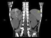 男孩,5岁。消瘦、贫血、纳差和腹部包块3个月余, CT如图所示,下列说法正确的是